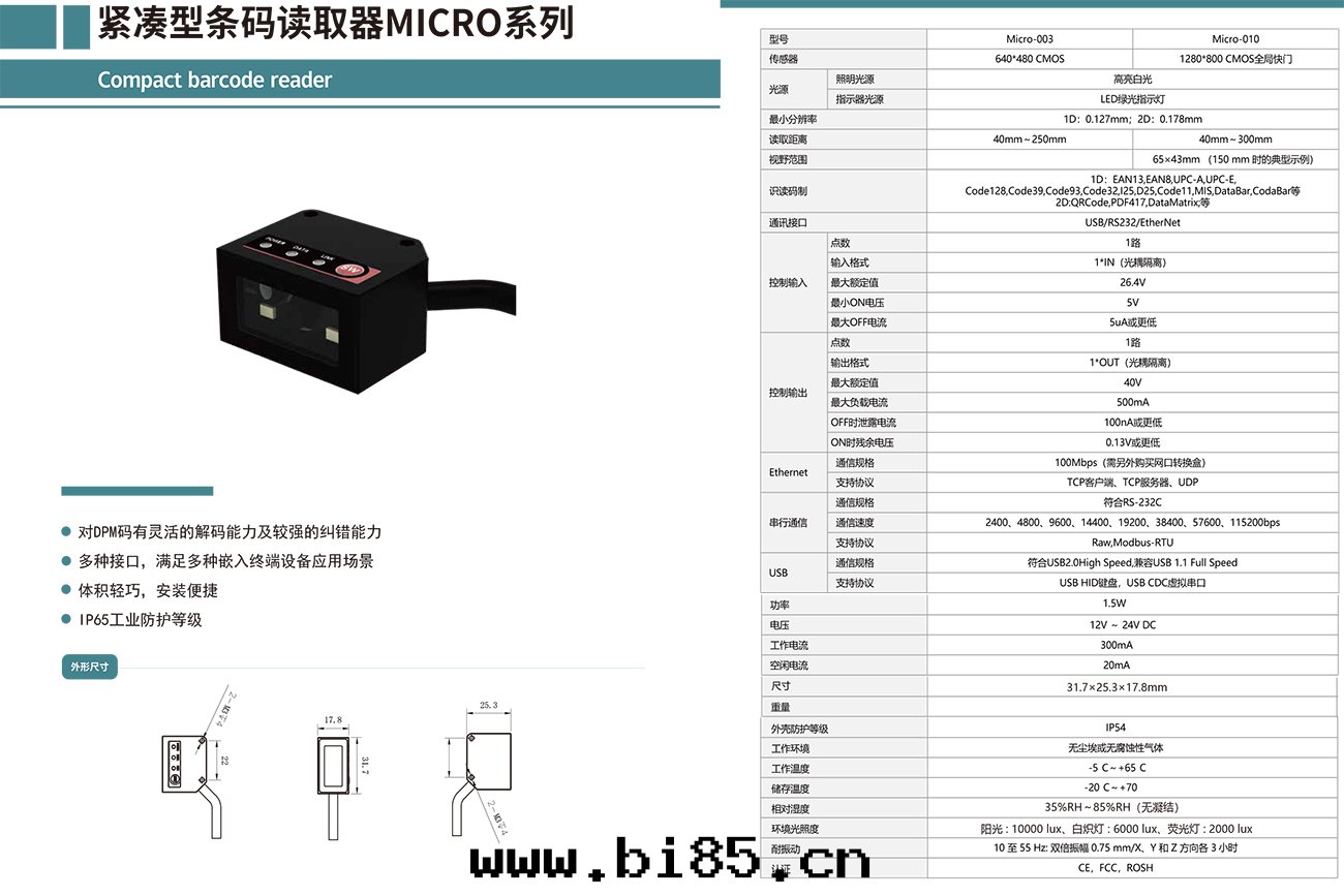 緊湊型条(tiáo)碼读取(qǔ)器MICRO系(xì)列