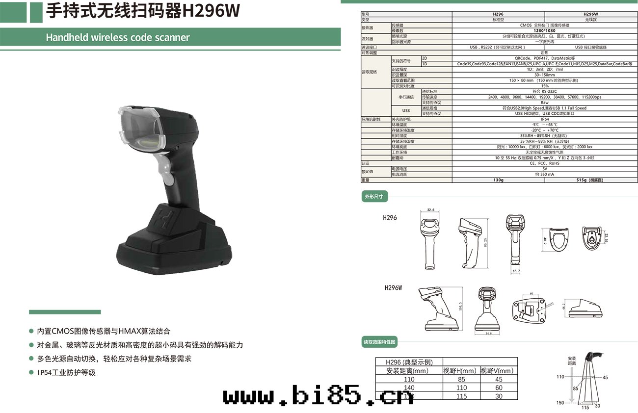 手(shǒu)持(chí)無線(xiàn)掃碼器H296W系(xì)列